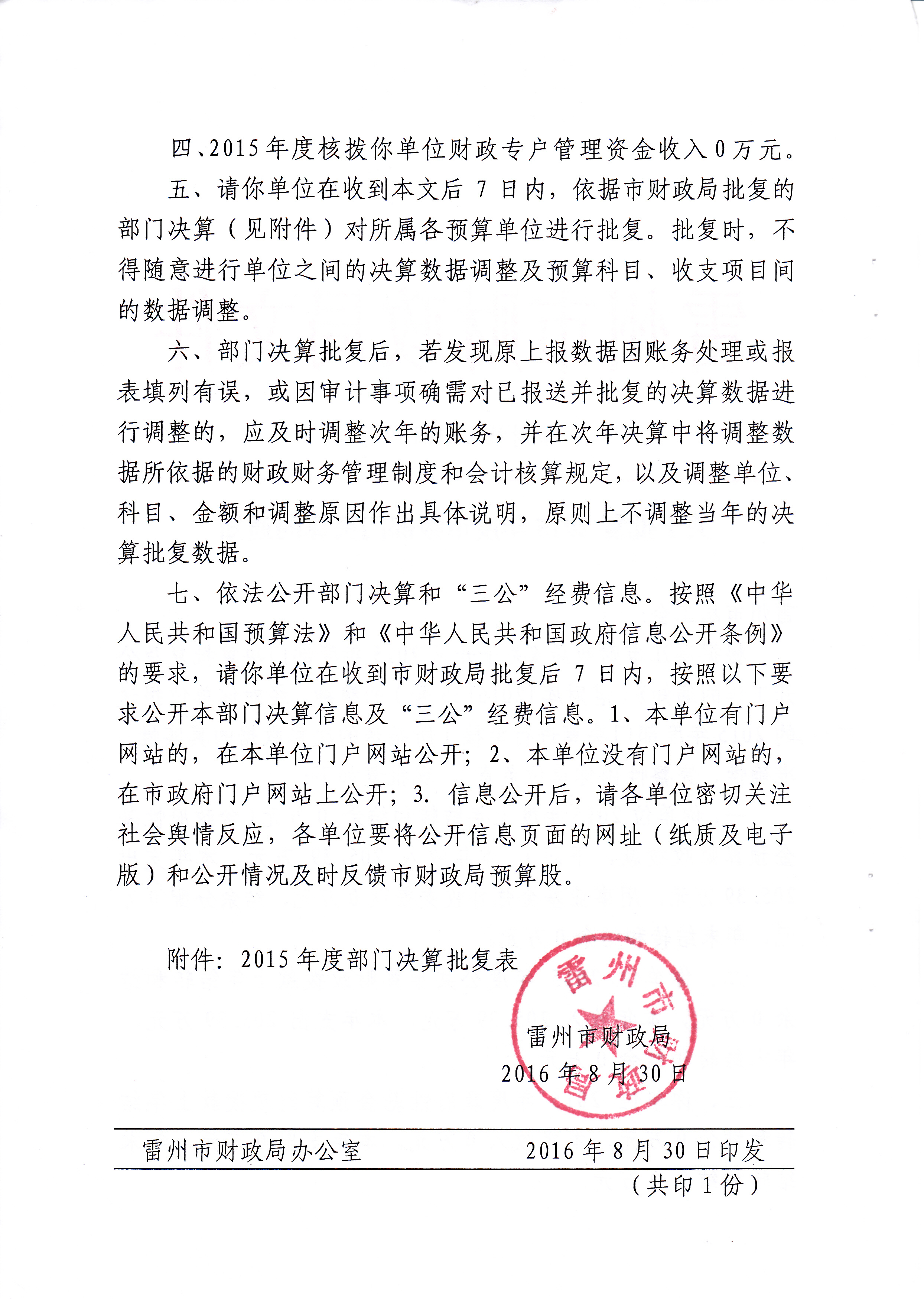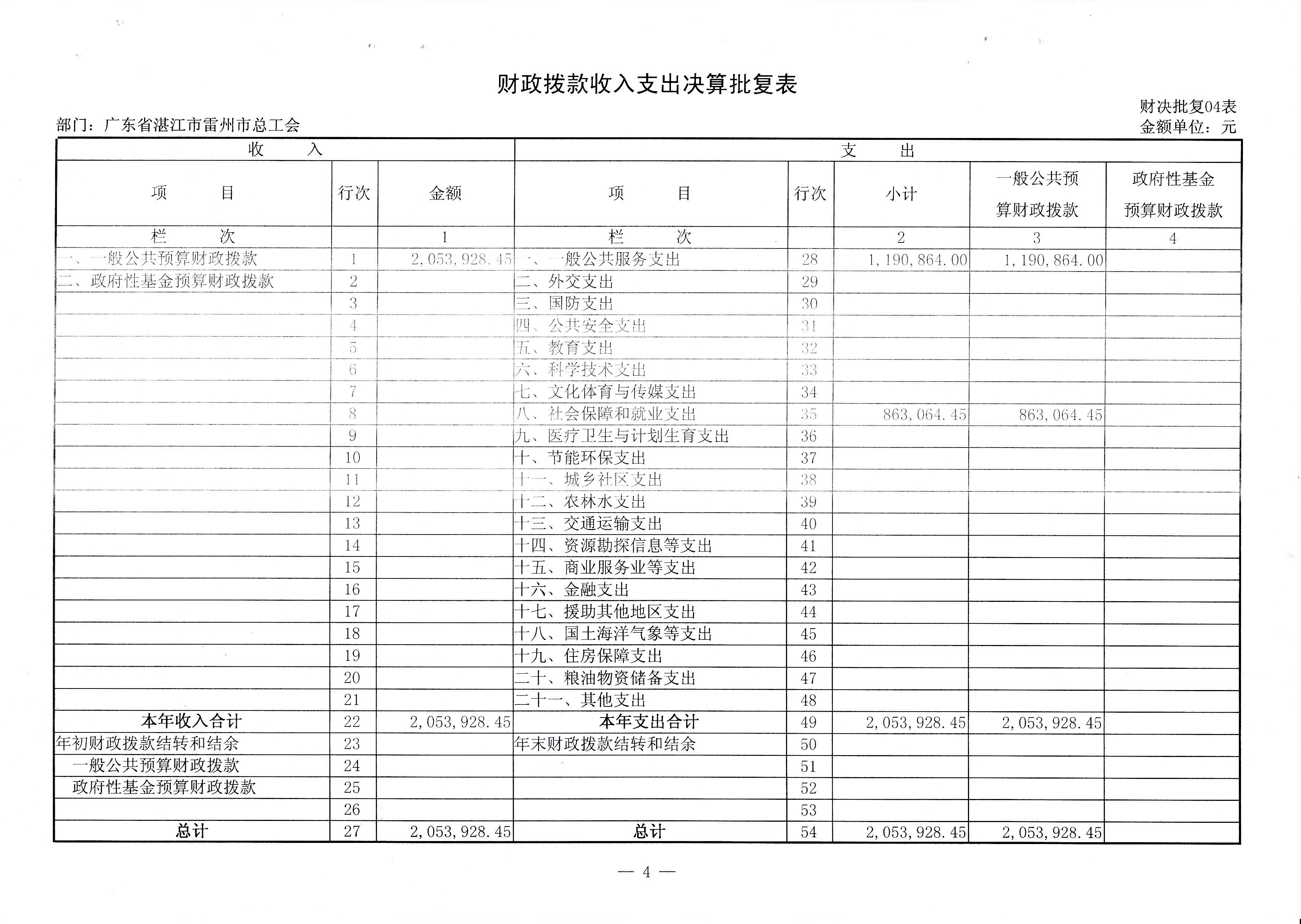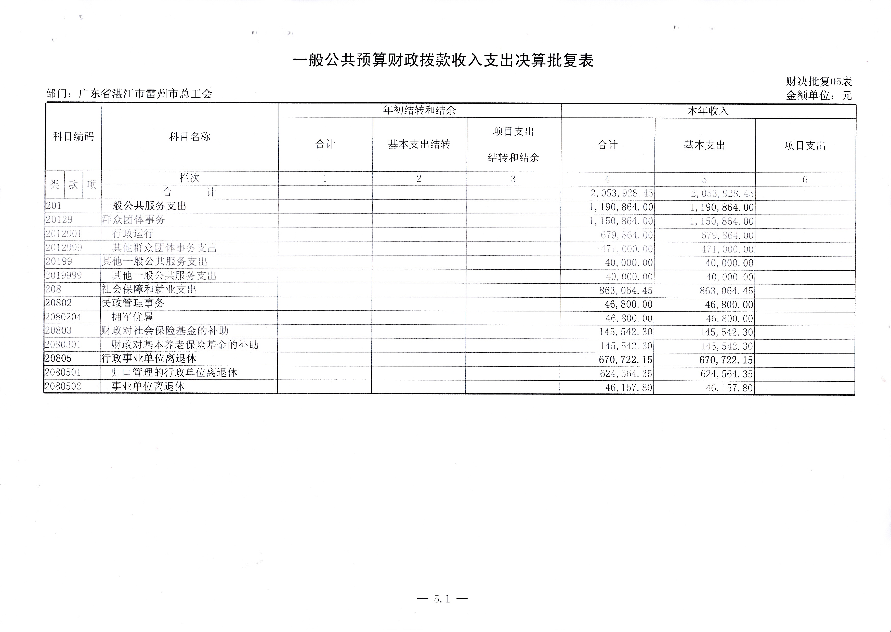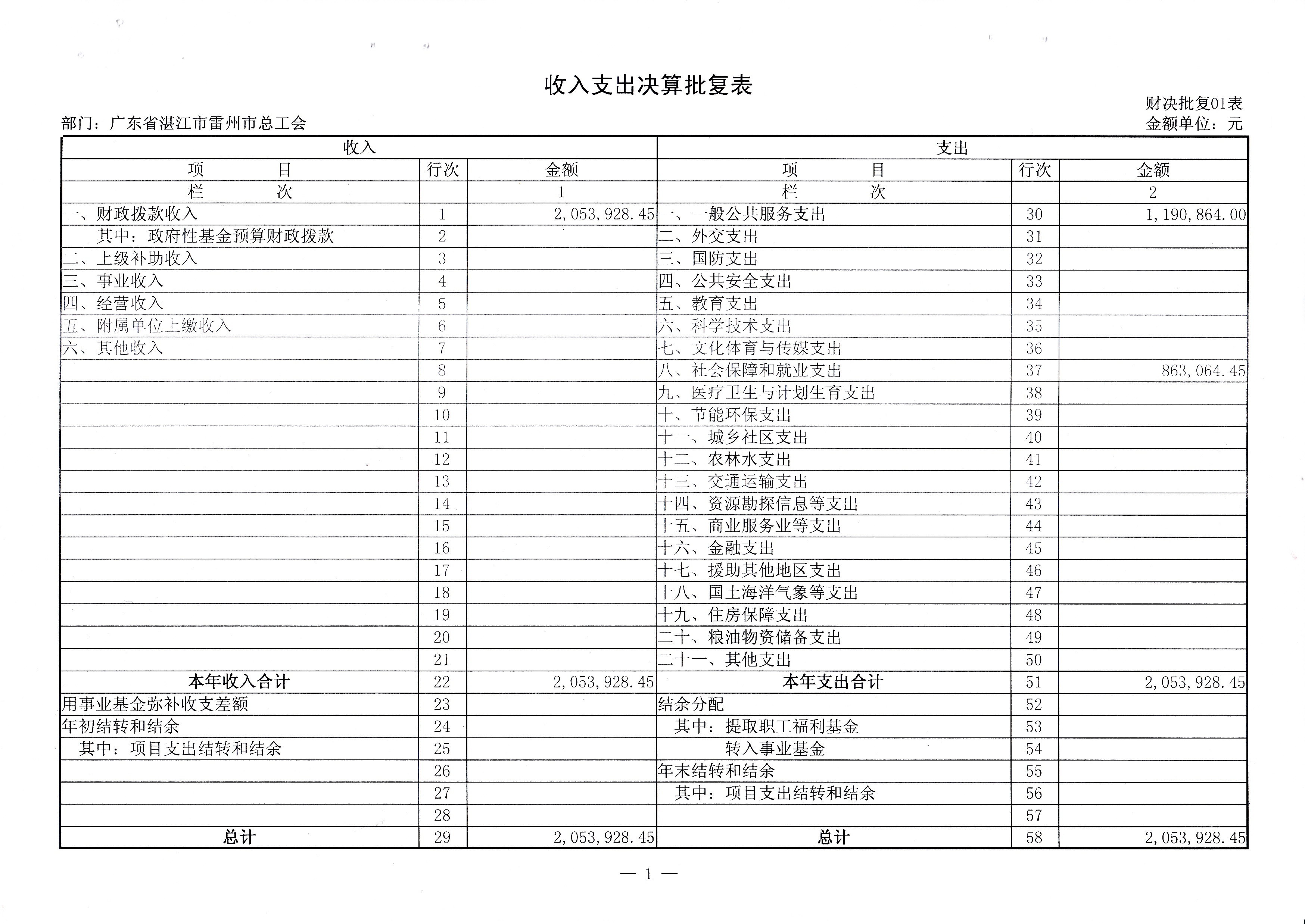 2015年雷州市总工会决算批复公开