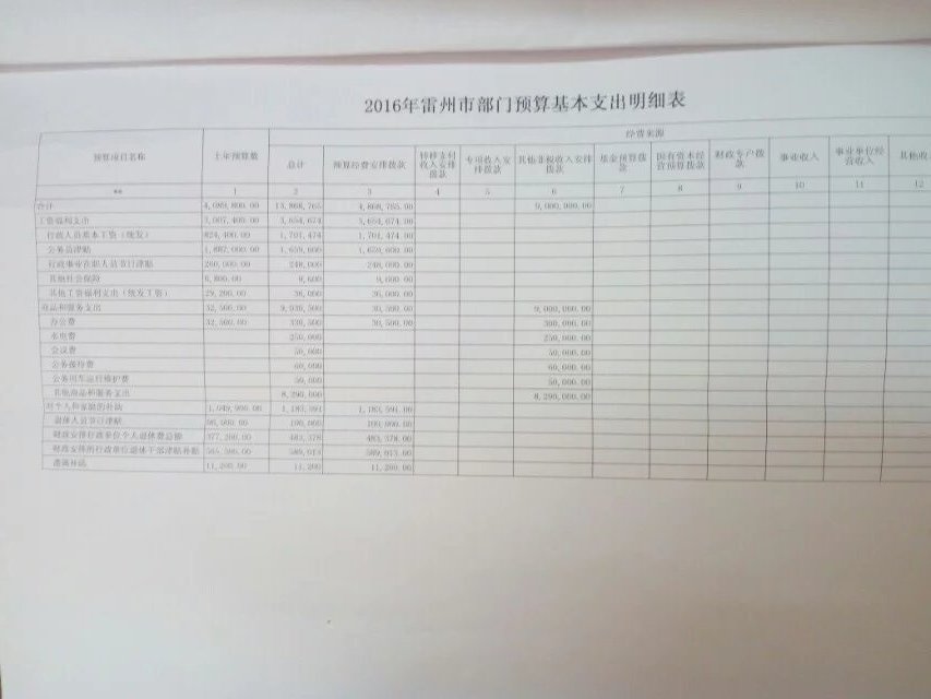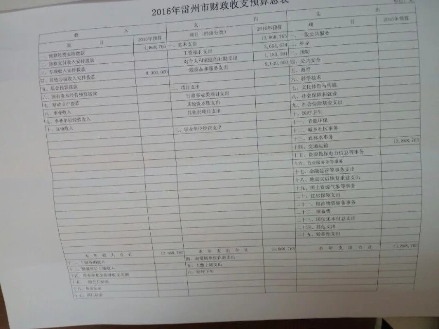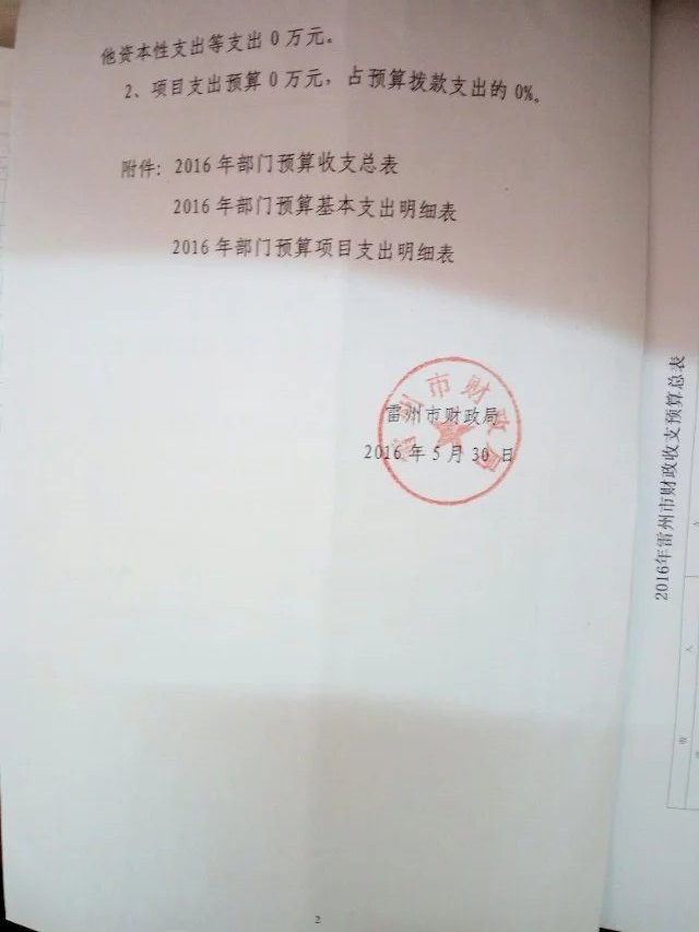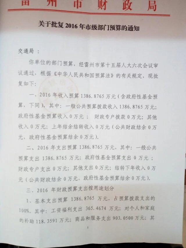 雷州市交通局2016年财政预算