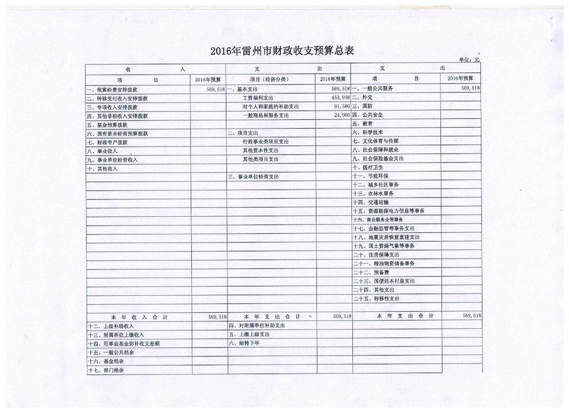 雷州市法制局2016年财政预算