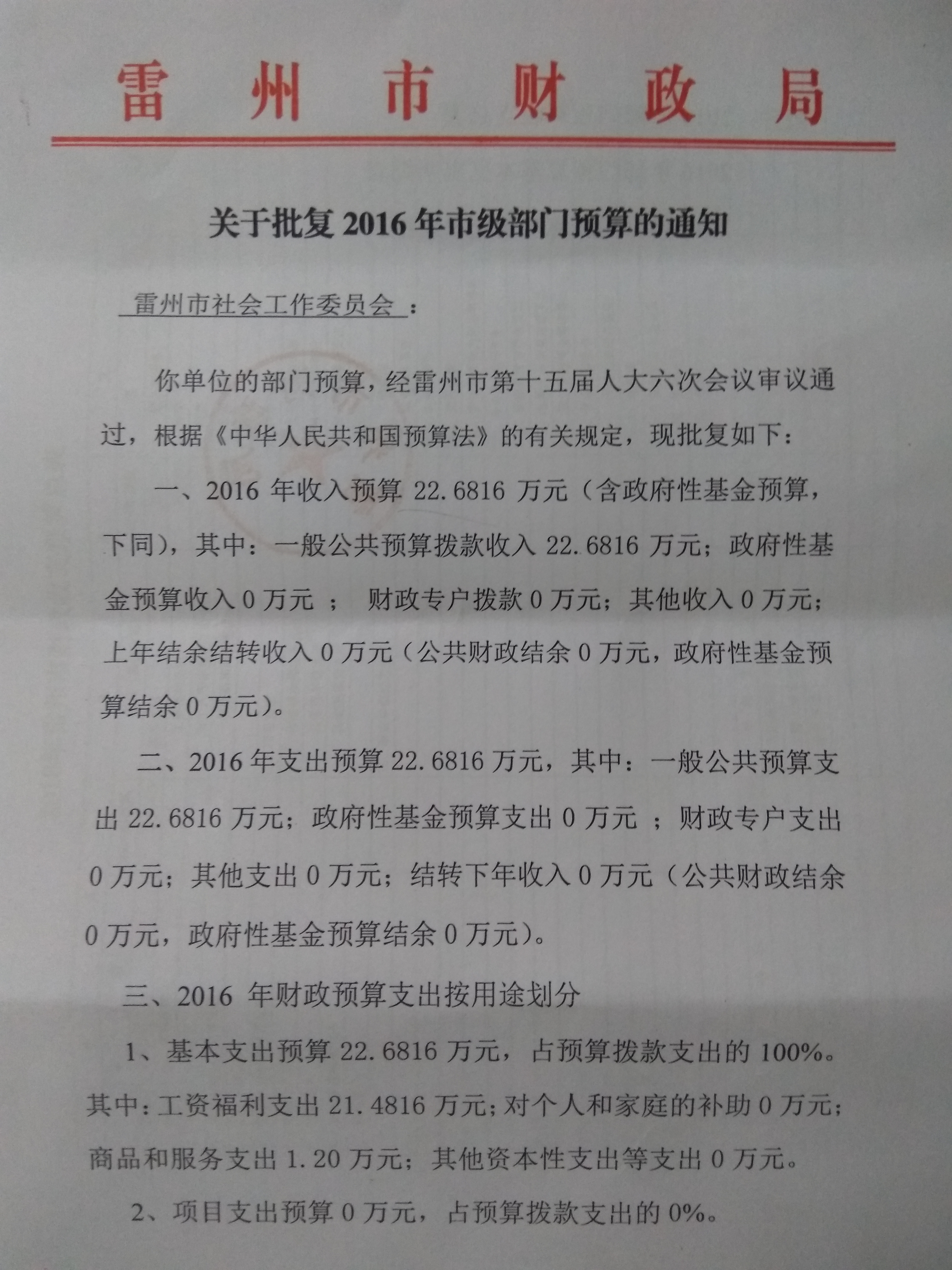 | 2016年雷州市财政收支预算总表 | ||||||||