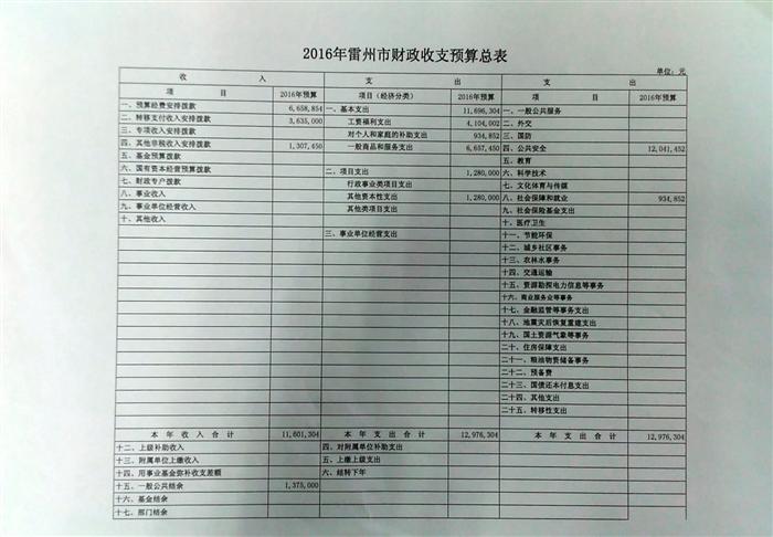 雷州市司法局2016年部门预算公示