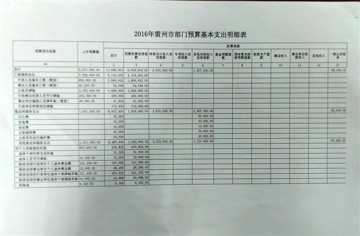 雷州市司法局2016年部门预算已经雷州市财政局批复,现将预算明细表予以公示