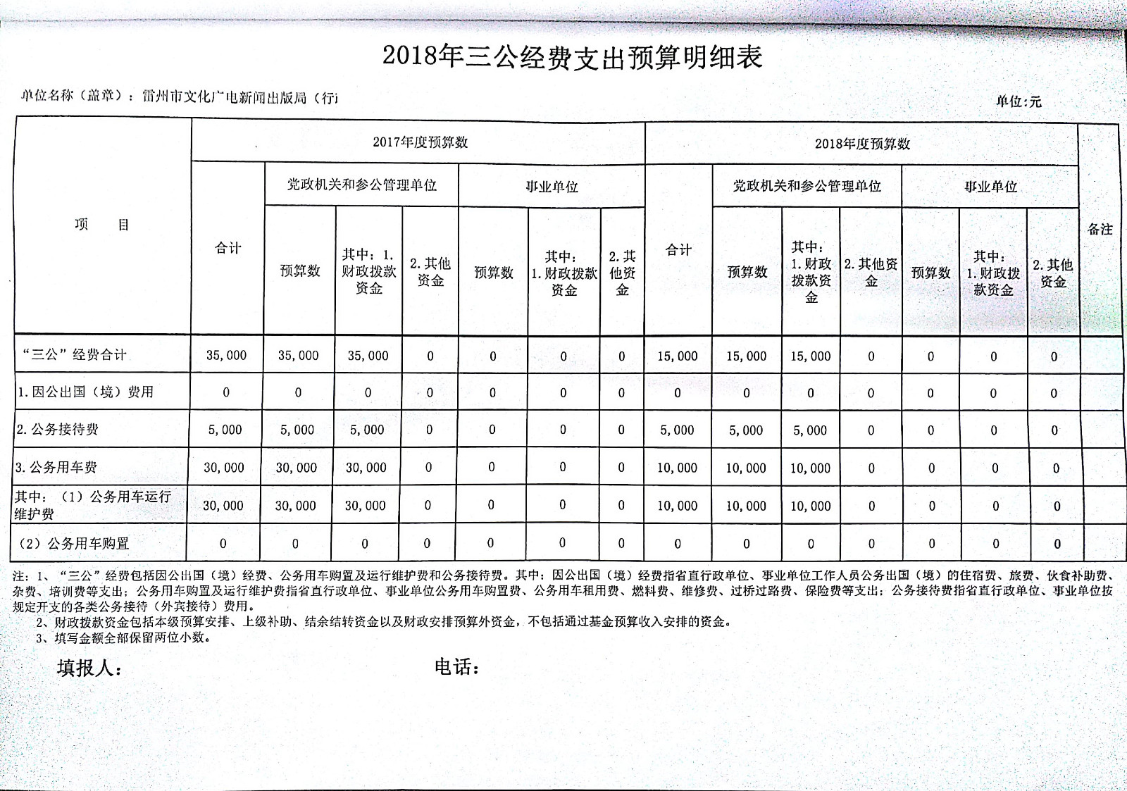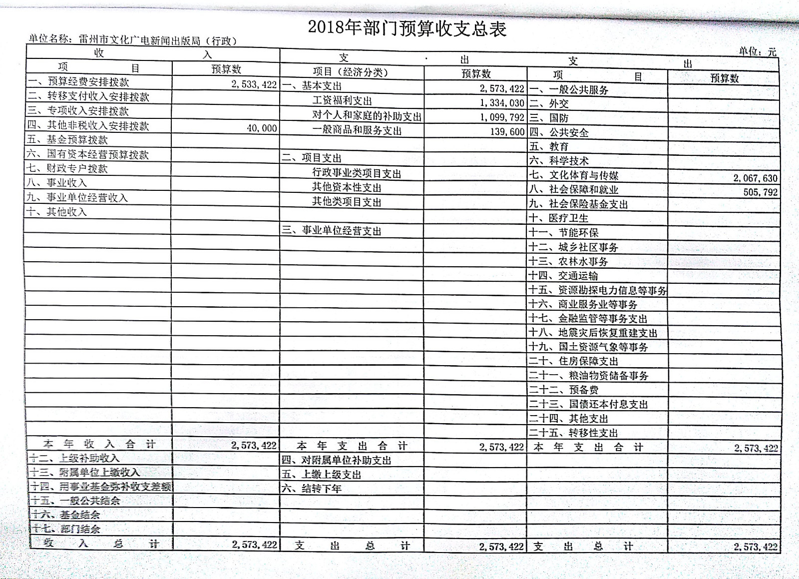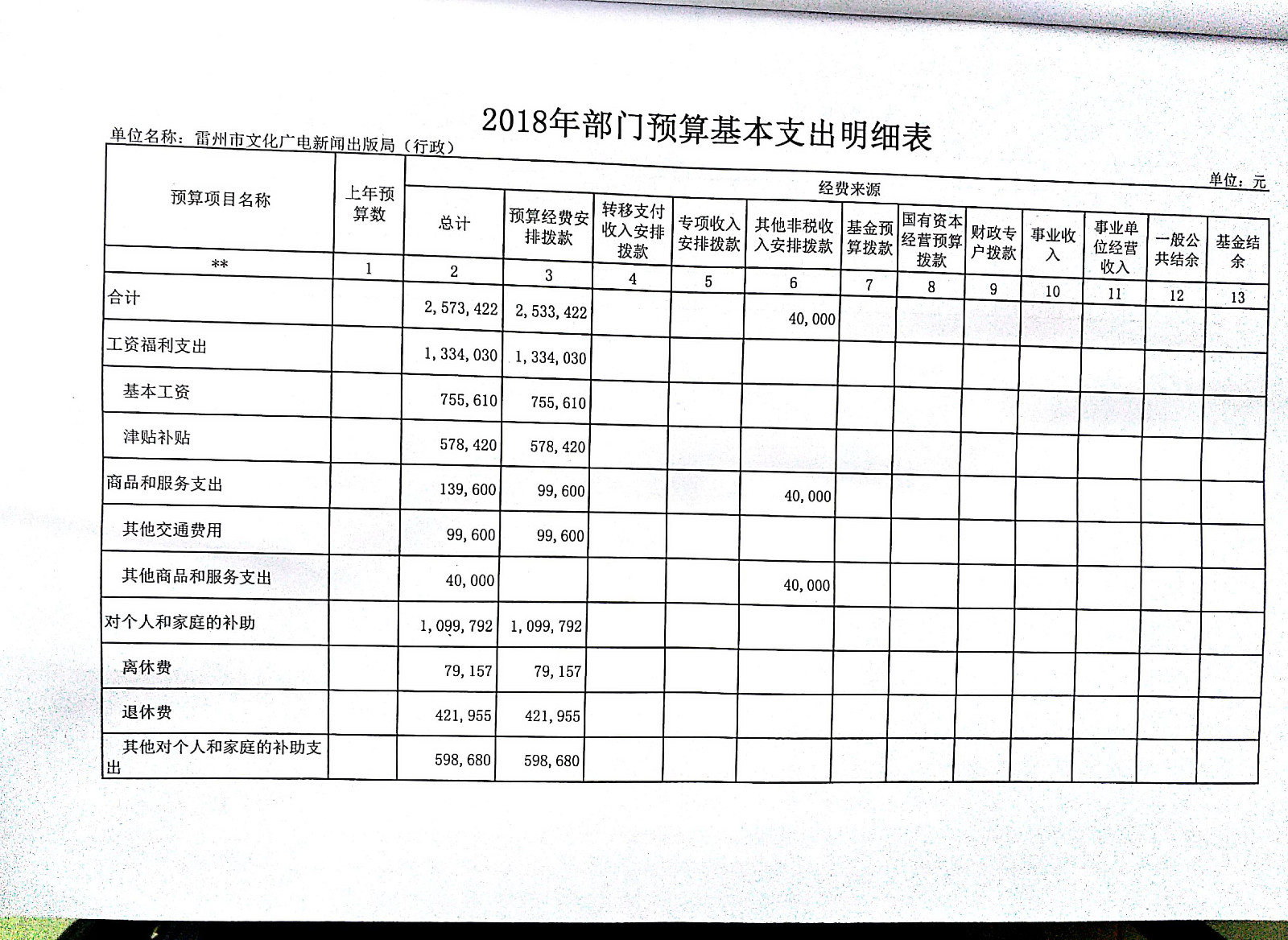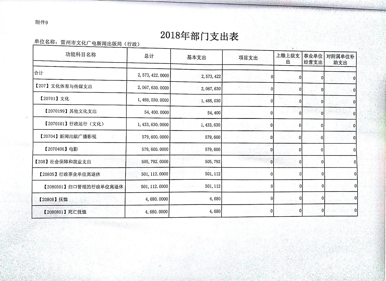 第二部分 2018年雷州市文化广电新闻出版局部门预算表(祥见附表)