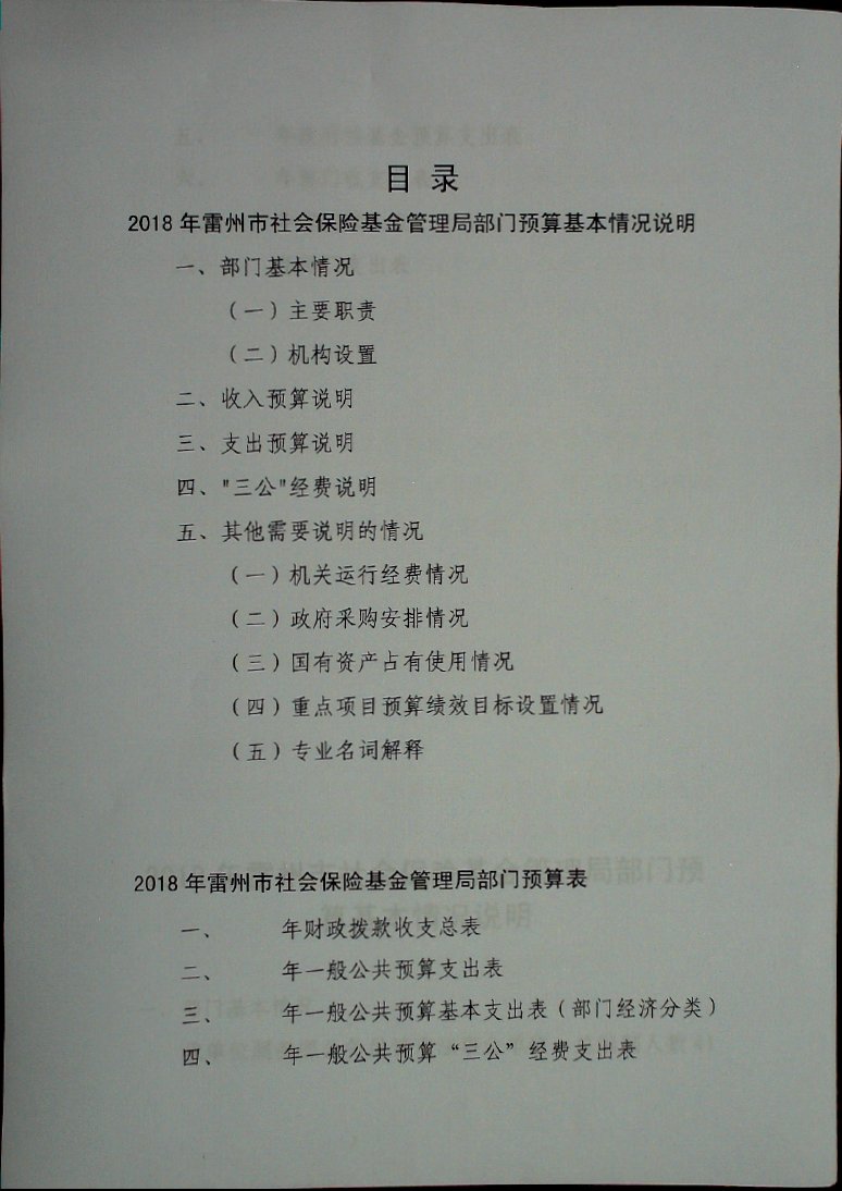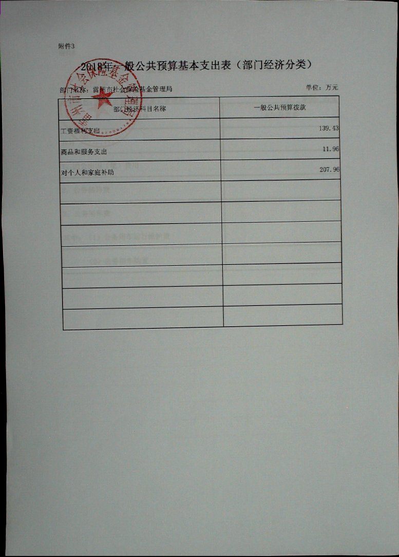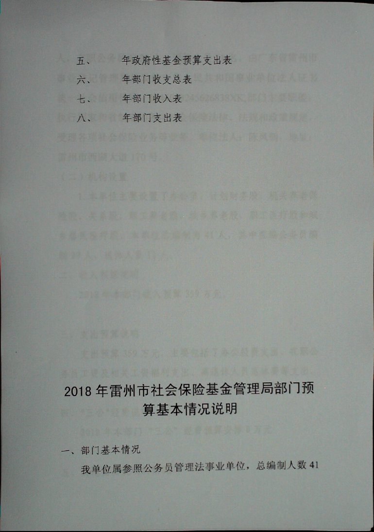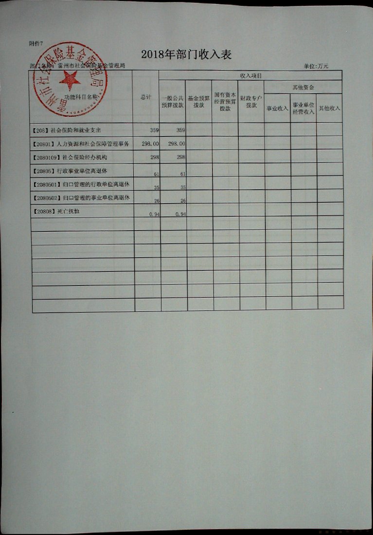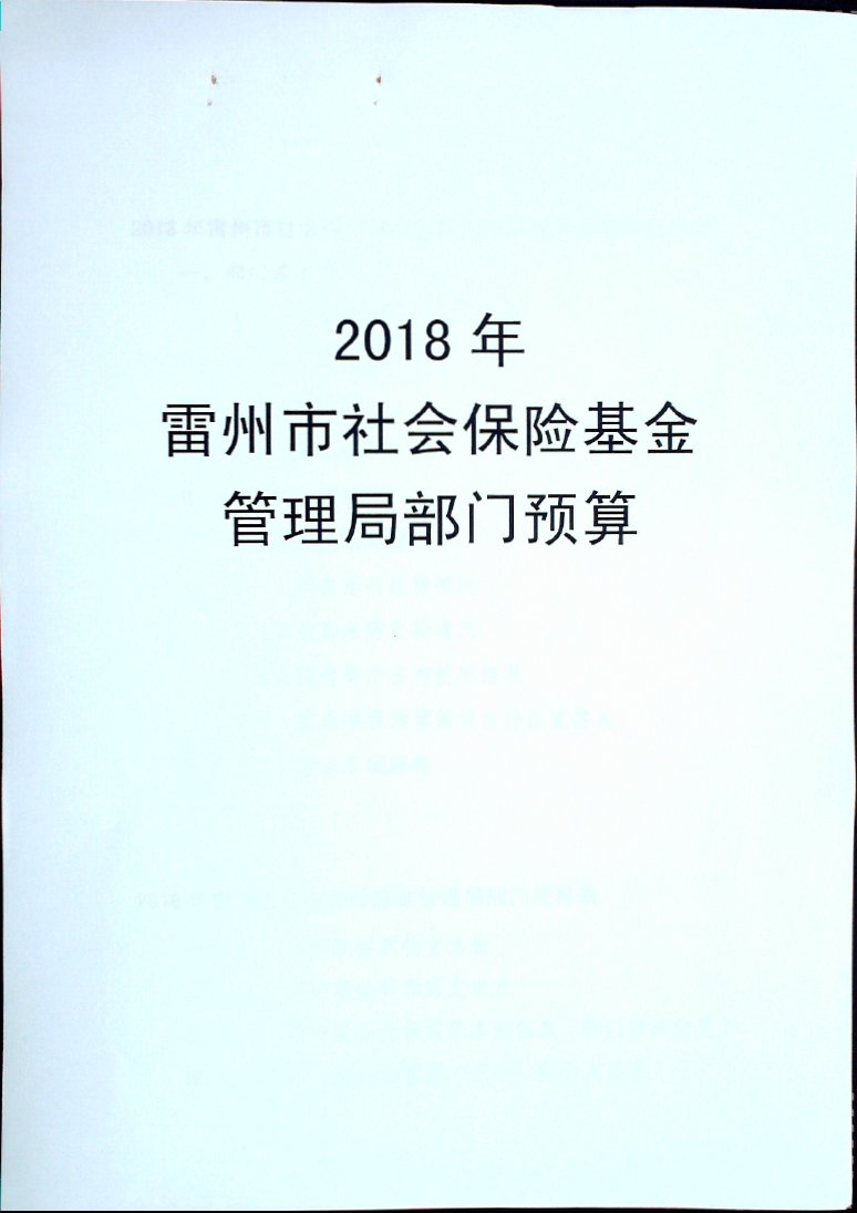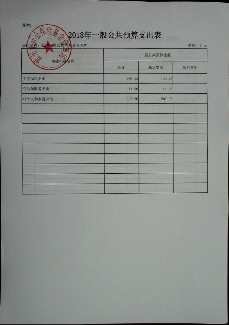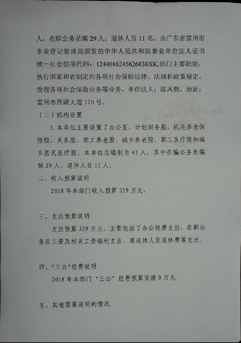 2018年雷州市社会保险基金管理局部门预算