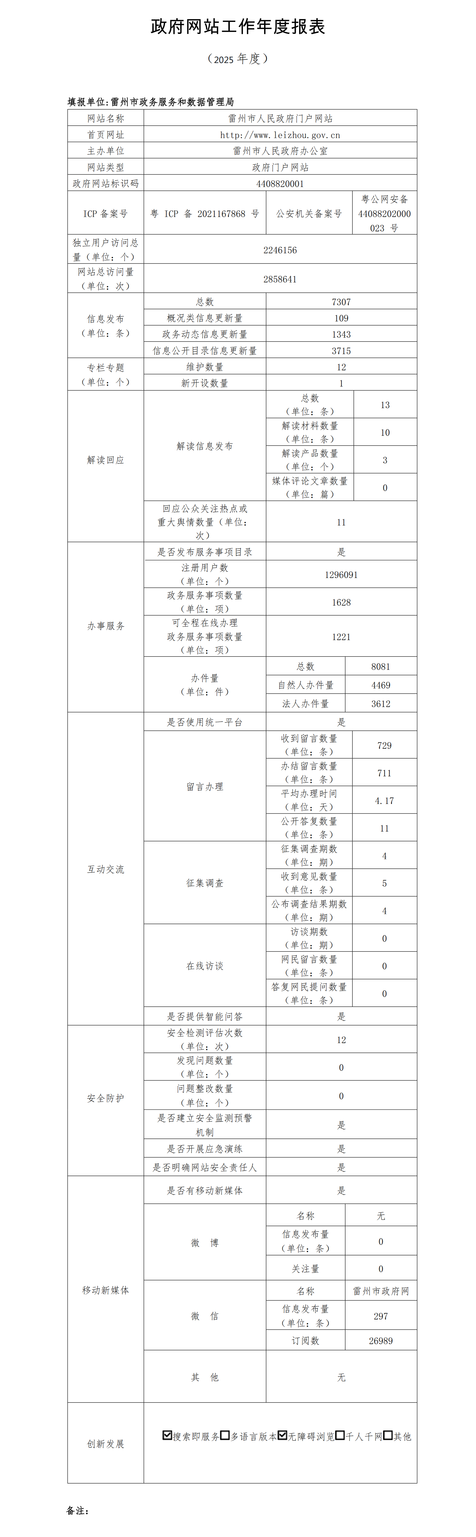 雷州市人民政府门户网站2025年度工作报表.pdf