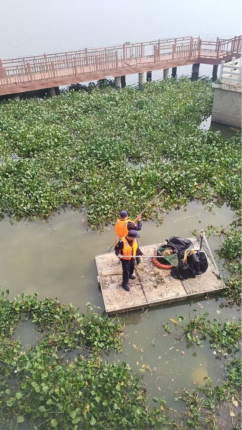 二是强化环境清洁。每日对城区19座公园公厕进行深度清洁与消杀,确保卫生死角清零;及时清运垃圾及清洗垃圾桶,减少蚊虫食源孳生;重点针对蚊虫滋生的关键隐患点,清理绿化带及其他易发生积水隐患点,从源头切断伊蚊繁殖链条。同时,集中清理西湖水库碧道进水闸口漂浮物,对各园区排查清理,喷洒高效氯氰菊酯进行专项灭蚊处理,全面疏通蚊虫栖息“通道”。