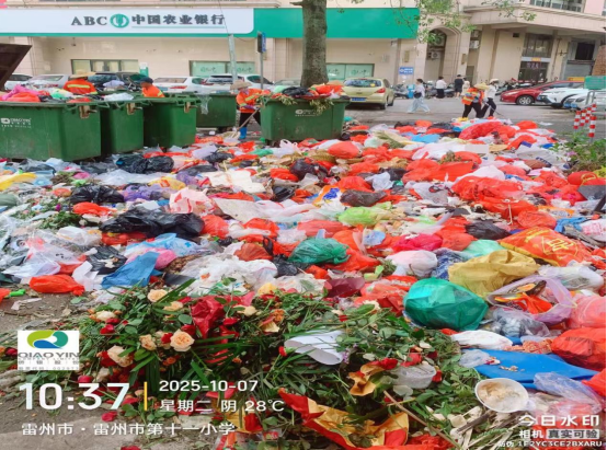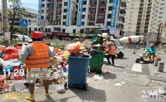 台风过境后,垃圾清运与市容恢复是首场攻坚战。环卫处联合幸福基业、侨银等环卫公司全员出击,机械全开,集中力量对西湖大道、第十一小学周边等垃圾堆积较重区域进行突击清理。环卫工人持续作业,确保路面垃圾及时清理,全力以最快速度恢复整洁市容。
