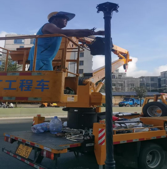城建中心市容组与城监组全面展开巡查与抢修。高空作业车上,维修人员紧张检修受损路灯;各施工点位同步加强安全巡查,保障重建作业顺利推进,筑牢城市运行安全基础。