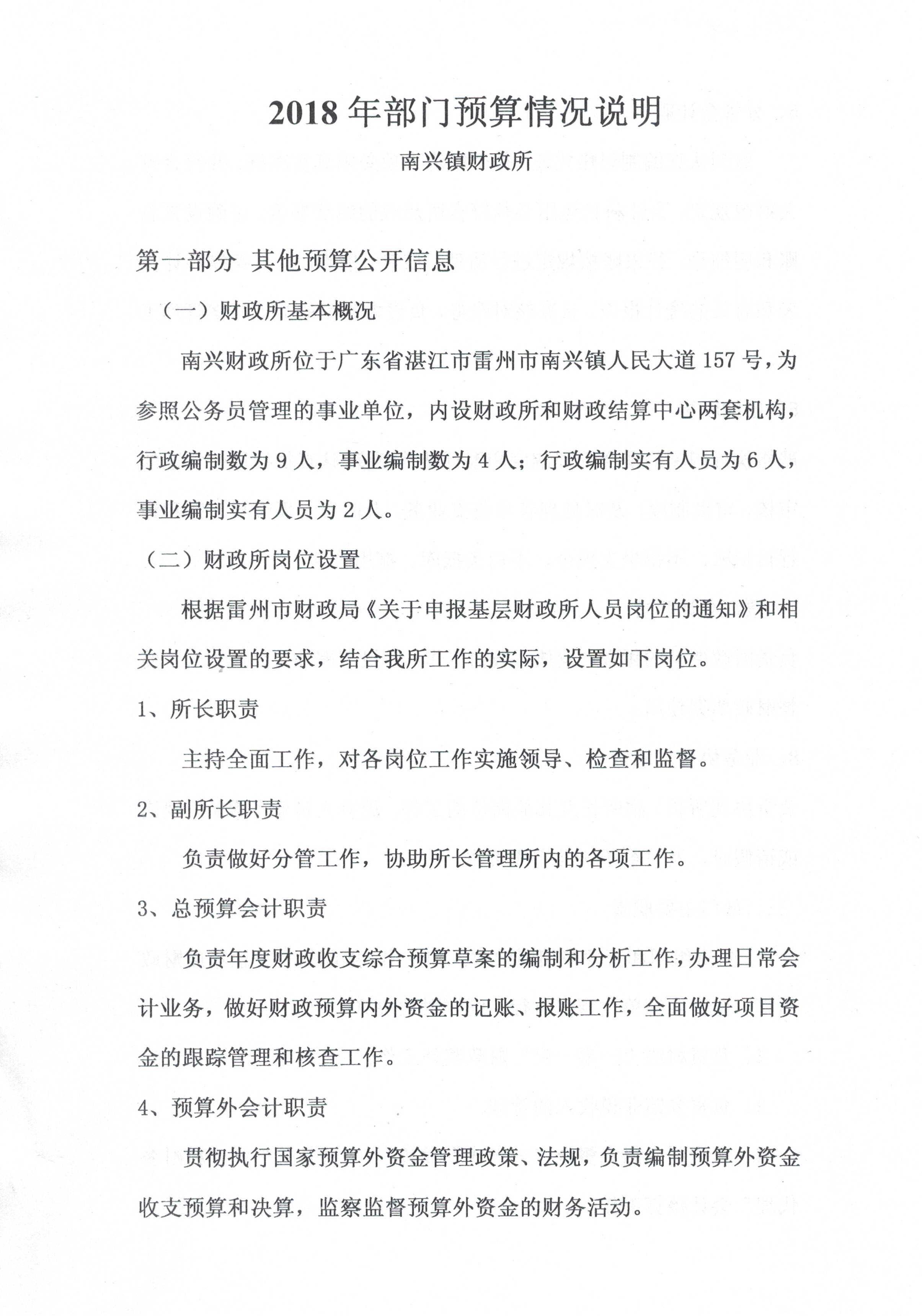 2018年部门预算情况说明(南兴镇财政所)