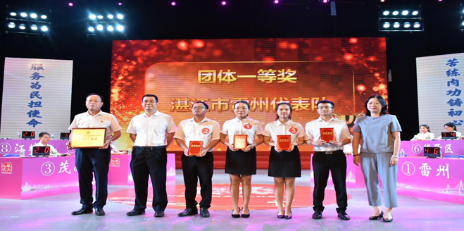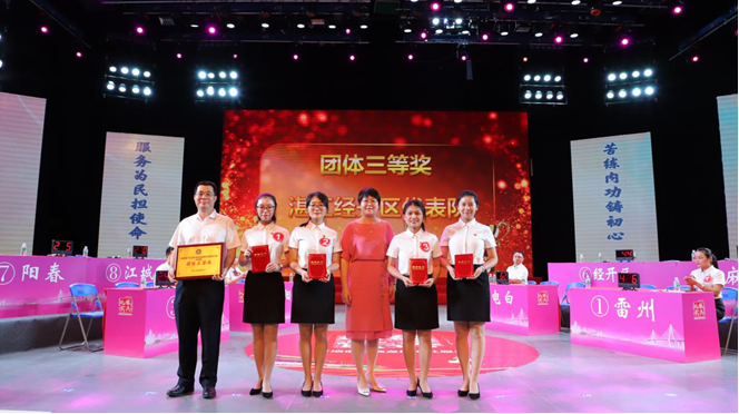 经过激烈角逐,湛江雷州市代表队、茂名市电白区代表队、湛江经济技术开发区代表队分别获得团体一、二、三等奖,成功晋级省内赛;同时评选出本赛区“最佳风采奖”选手9名。湛江市派出参与比赛的3支队伍取得佳绩,其中雷州市代表队和湛江经济技术开发区代表队喜获晋级省内赛资格,麻章区代表队获得第4名。省人力资源和社会保障厅党组成员、驻厅纪检监察组组长苏清红,湛江市人民政府副秘书长张建文,湛江市人力资源和社会保障局党组书记、局长黄真窦以及阳江、茂名、湛江市人力资源和社会保障局分管领导分别给予获奖团队和获奖选手颁奖。