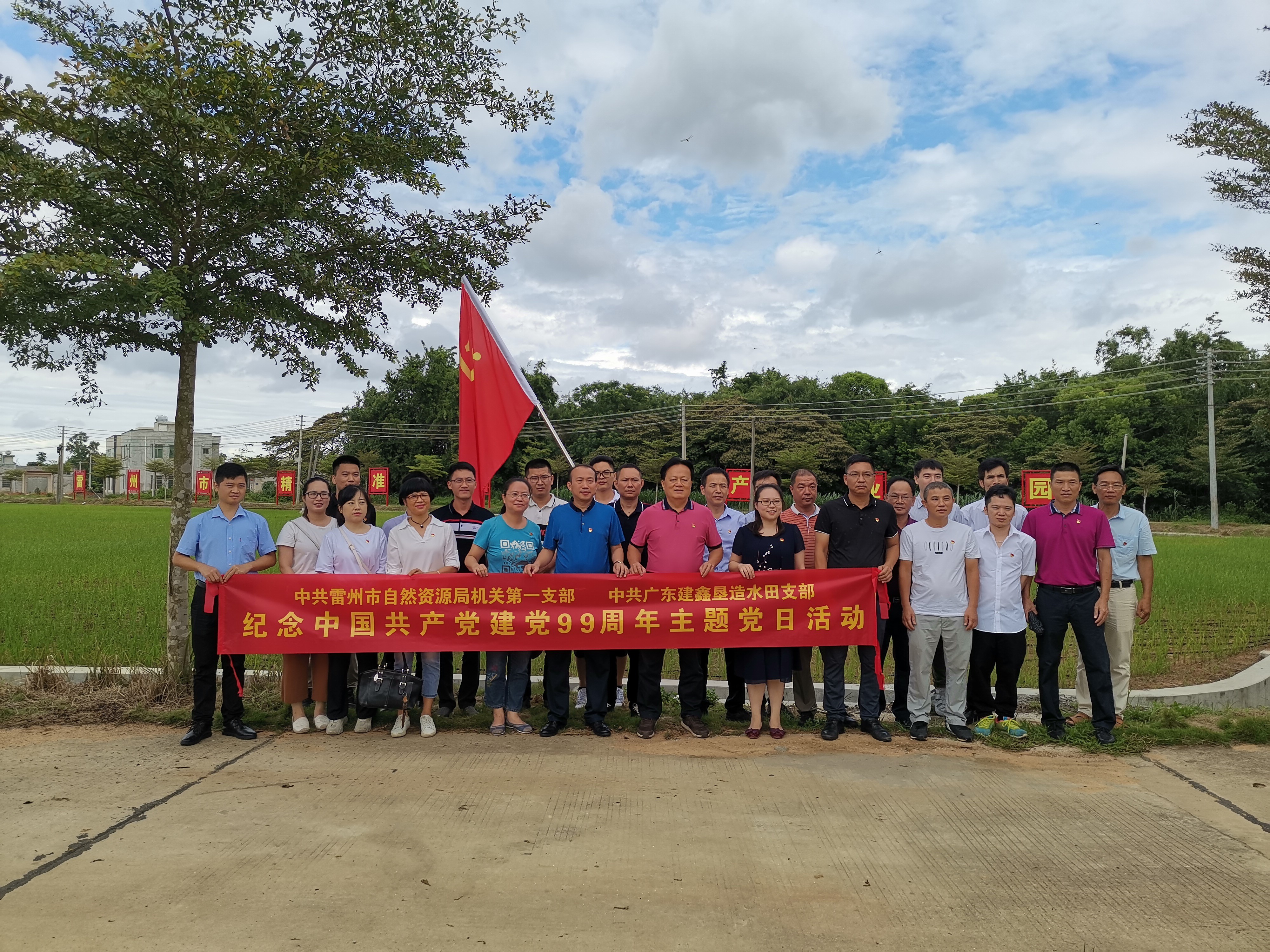 为庆祝中国共产党建党99周年,进一步推进中共雷州市自然资源局机关第一支部的党建工作,受中共广东建鑫垦造水田党支部的邀请,中共雷州市自然资源局机关第一支部于2020年8月14日,与中共广东建鑫垦造水田党支部共同开展党建活动。参加本次建党工作交流会的有:中共雷州市自然资源局机关第一党支部书记、副局长陈光及蔡景端副局长、谭宏宇副局长、中共广东建鑫垦造水田党支部书记廖秋华、广东建鑫公司党委委员庄兴等26人。