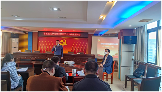 为深入贯彻落实党的二十大精神,动员全体干部职工更加紧密地团结在以习近平同志为核心的党中央周围,高举中国特色社会主义伟大旗帜,坚定道路自信、理论自信、制度自信、文化自信,为全面建设社会主义现代化国家,全面推进中华民族伟大复兴而团结奋斗。2023年1月13日,市发改局特邀中共雷州市委党校高级讲师黄子介教授,到单位开展学习贯彻党的二十大精神宣讲会。