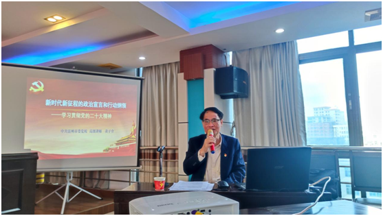 会上,黄子介教授从四个方面系统完善地介绍了党的二十大召开的重大意义、如何全面准确把握党的二十大深刻内涵、如何学深悟透党的二十大精神,在新征程上指导实践、推动工作。