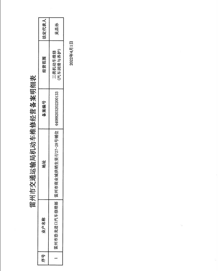 雷州市交通运输局机动车维修经营备案明细表