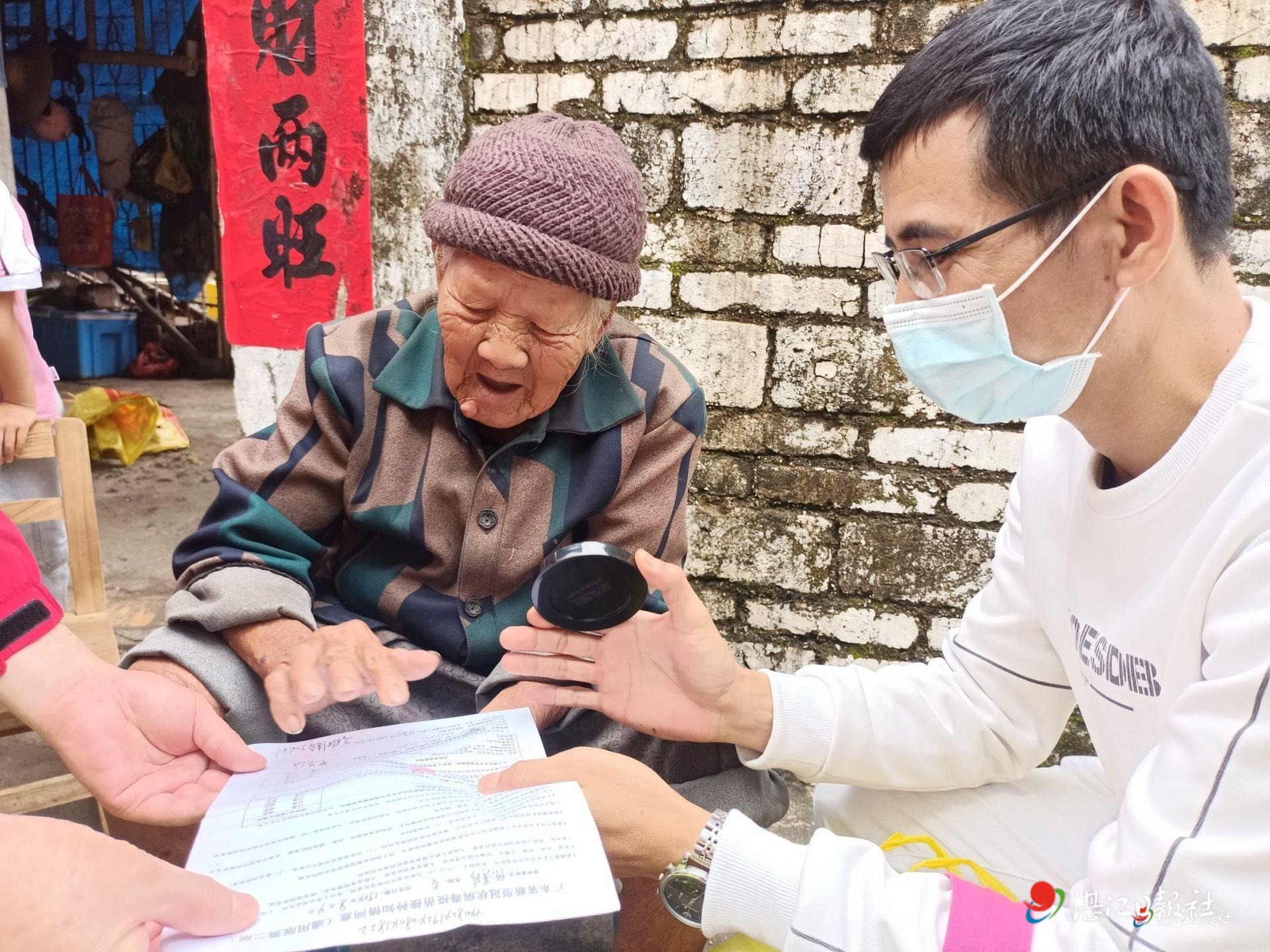 3月30日,在客路镇上坡村,服务队走进各农户,与群众亲切交谈,了解各家庭老人身体健康和生活情况,并给老人测血压,摸脉开药,宣传疫情防控政策和有关常识;在确认老人身体符合接种条件后,镇村干部和医务人员会按照有关规定,动员老人现场接种,以此带动当地疫苗接种行动深入开展。据了解,该镇上坡村98岁老人陈莲珍,其家人获悉当地政府正在开展为老人送温暖活动的消息后,十分激动,当即主动联系服务队,希望医务人员能上门服务,尽快为老人落实疫苗接种措施;该镇上梁村一名102岁老人,在得知医务人员上门接种消息后,骑着三轮车,主动前往村委落实了接种措施。