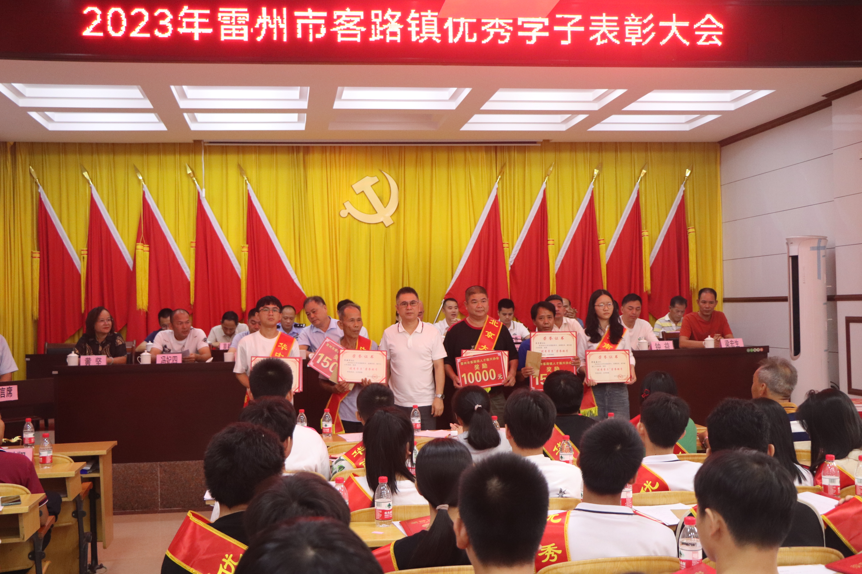 8月20日,雷州市客路镇2023年优秀学子表彰大会召开,参加今年中、高考取得优秀成绩的45名学子,分别喜获雷州市客路镇人才振兴协会表彰。