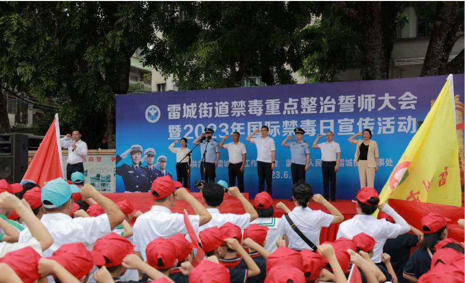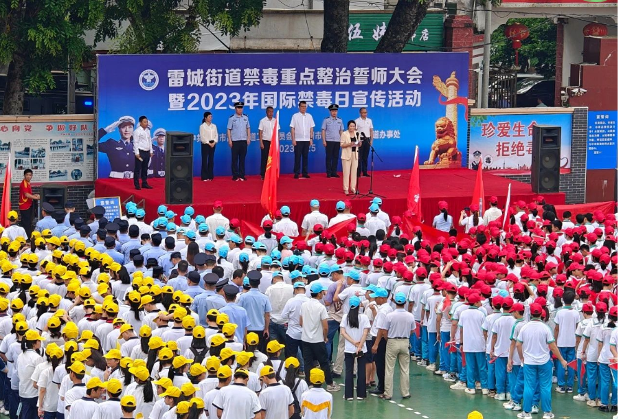 6月25日上午,雷城街道举行禁毒重点整治誓师大会暨2023年国际禁毒日宣传活动,彰显雷城街道扭转禁毒工作被动局面、如期实现摘“毒帽”目标的信心和决心。