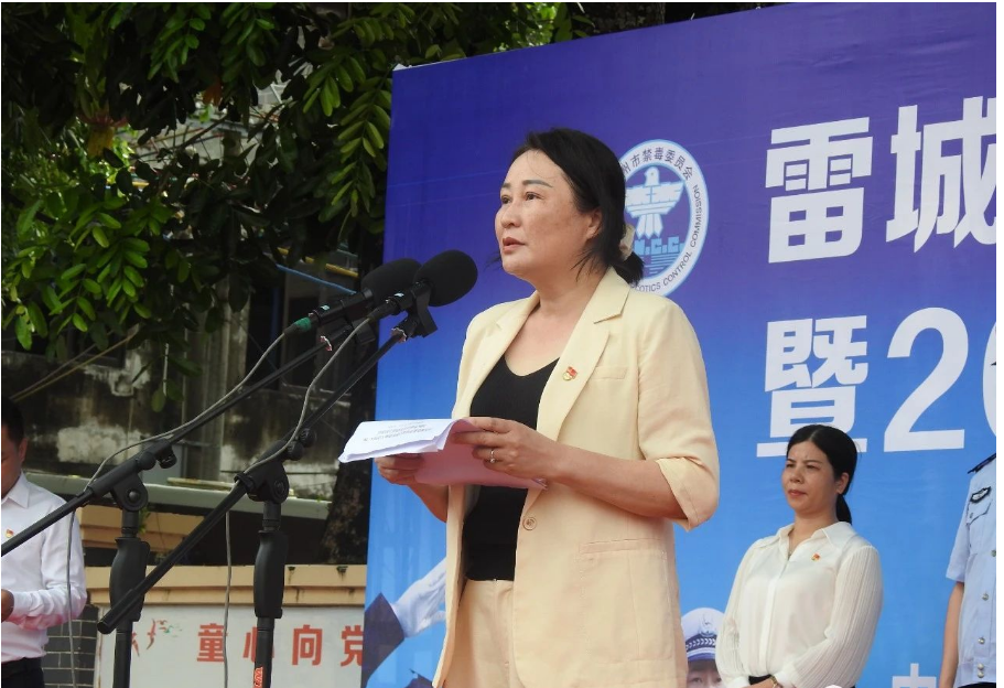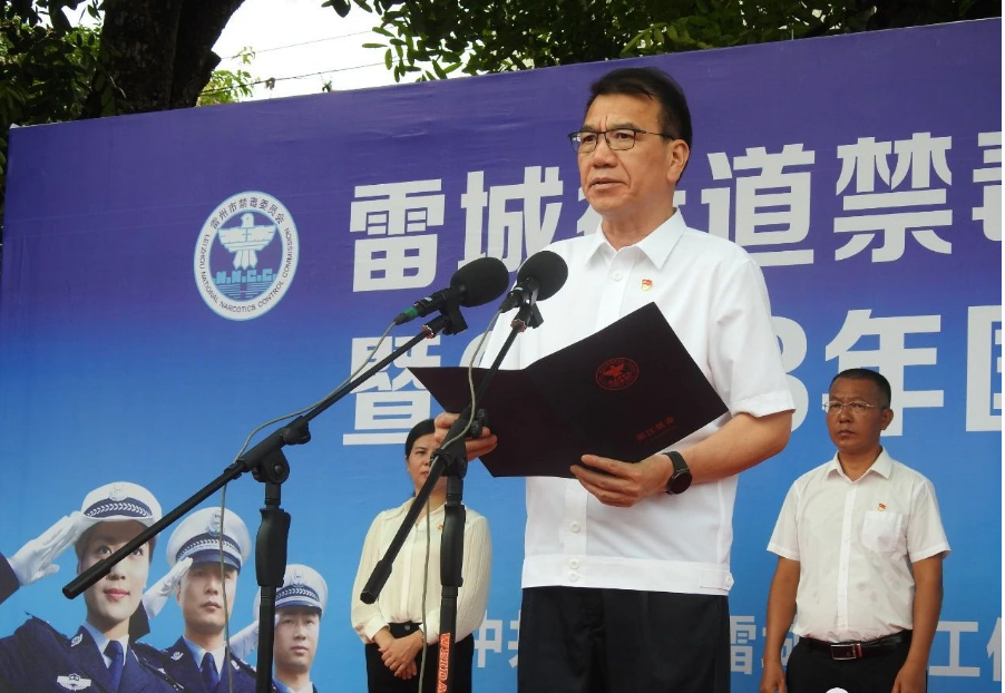 湛江市禁毒办主任、湛江市公安局党委副书记、副局长梁建辉,湛江市禁毒办副主任、禁毒支队政委戴浩,雷州市禁毒委副主任、副市长、公安局局长何润华,雷州市政协副主席赵彦海,雷州市禁毒委委员、市公安局副局长马玉东等领导参加活动。活动由雷城街道党工委副书记、办事处主任李密同志主持。