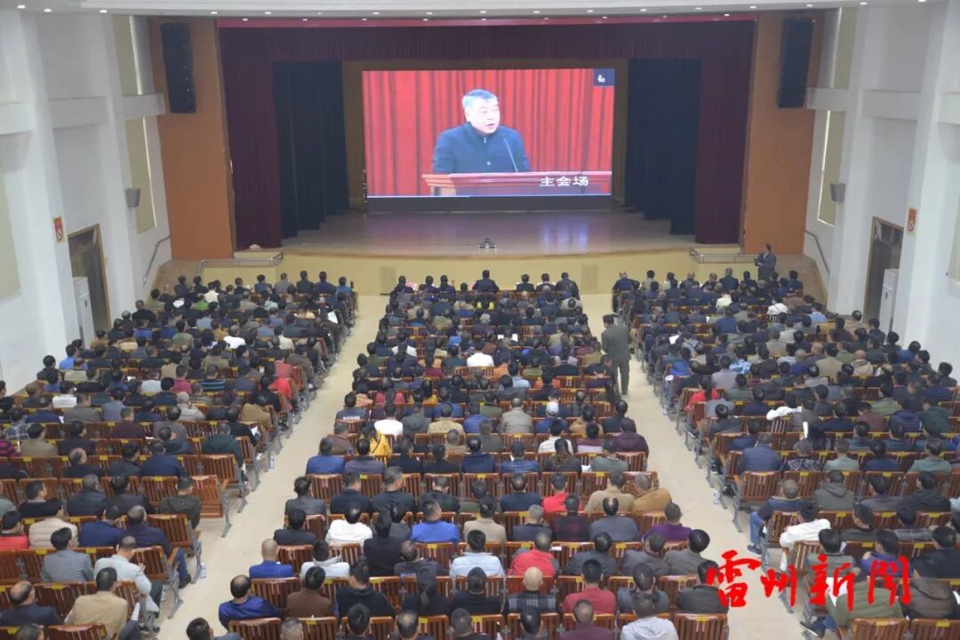 会议以电视电话会议形式开至各地级以上市和各县(市、区)。雷州市委书记李雄光,雷州市委副书记、市长黄廉东,市领导郑克芬、何儒、何培烈、曹康武、孙正浩等,和各镇(街)、相关部门领导在雷州分会场收听收看了电视电话会议。