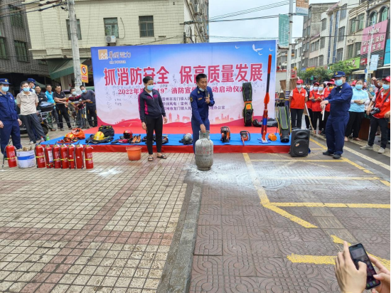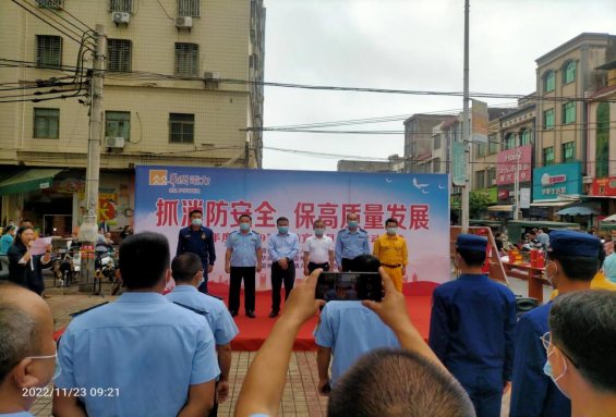 为了大力普及消防法律法规和消防安全知识,进一步提高全民消防安全素质和社会抵御灾害能力,增强群众消防安全意识。11月23日上午九时,我镇组织应急办同志在新华综合市场门口前举办了“119消防宣传月”启动仪式暨消防演练活动,活动主题为“抓消防安全 保高质量发展”。镇长卓加利同志、常务副镇长李汉龙同志、镇分管消防安全领导银伟锋同志出席了活动。