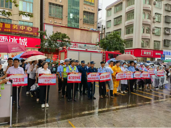 在活动现场,我镇通过悬挂宣传横幅、派发宣传手册、普法宣传车巡游、消防器材展示等多种方式,向群众宣传安全生产法律法规知识和各类安全常识,提供方针政策、应急知识、用电用气、防灾减灾救灾等方面的咨询,提升群众防范风险的能力和安全意识。