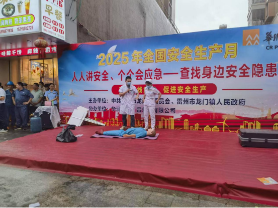 在活动应急技能演练环节,市消防救援大队消防员进行灭火实操演练,讲解生活中消防常识及消防器材使用方法。随后湛江农垦第二医院医疗团队在活动现场详细讲解心肺复苏急救流程,让现场观众对自救互救基本知识有了更多了解,不断提升群众应急处置能力,在关键时刻用得上、用得好。