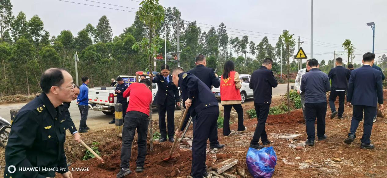 三月春风十里绿,植树造林正当时。为深入贯彻习近平生态文明思想,落实省委关于推进绿美广东生态建设有关部署,根据我市乡村绿化工作有关部署要求,3月11日,雷州市市场监督管理局党组书记、局长陈小勇带领局领导班子成员、机关党员干部到雷高镇黎陈村委会开展“植树造林,绿化家园”主题党日活动,爱绿护绿增绿,为绿充“植”共筑生态屏障。雷州市市场监督管理局领导班子成员、党员干部、镇部分领导班子及干部职工、黎陈村“两委”干部、党员群众、志愿者共30余人参加。