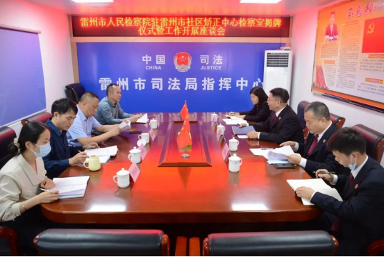为进一步健全完善社区矫正检察监督与协作配合工作机制,2022年3月25日,湛江市首个基层检察院派驻社区矫正中心检察室——“雷州市人民检察院驻雷州市社区矫正中心检察室”在雷州市司法局揭牌成立。