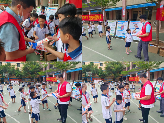 当天下午课间,市司法局利用流动宣传车在学校大门口播放关于未成年人保护系列的微电影,同时组织工作人员悬挂法治宣传横幅和摆放宪法、民法典、未成年人保护法、中华人民共和国预防未成年人犯罪法、预防毒品等相关知识的移动宣传展架,生动有趣的法治知识以及多样化的宣传形式吸引同学们积极参与到其中,市司法局党组成员、副局长周振宁带领普法股工作人员为学生们发放法治宣传资料并面对面向他们普及法律知识,活动现场气氛热烈。