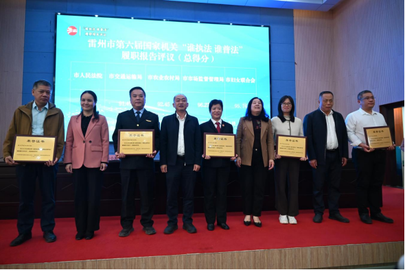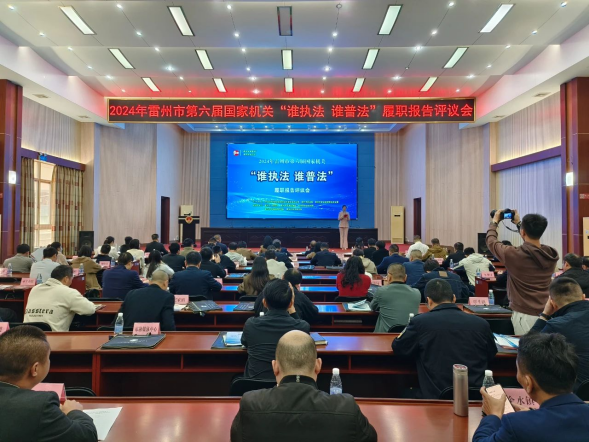 12月12日,2024年雷州市第六届国家机关“谁执法谁普法”履职报告评议会在市人民检察院召开,对市人民法院、市交通运输局、市农业农村局、市市场监督管理局、市妇女联合会等5个单位2021年以来的普法工作情况进行评议,检验各单位普法工作成效,进一步推进“八五”普法规划和决议全面落实,全面提升法治雷州建设水平。市委常委、政法委书记何荣拔出席会议并讲话。市人大常委会副主任、市总工会主席陈小华,市政协副主席陈小英,市普法办及有关普法责任单位有关负责同志等参加会议。