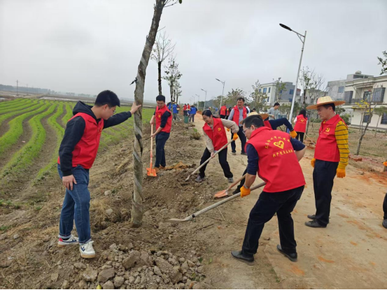 为扎实推进“绿美湛江”生态建设,深化“百县千镇万村高质量发展工程”,3月1日,湛江市财政局联合中国太保产险湛江中支公司,组织党员干部、志愿者等80余人,赴雷州市沈塘镇大周村开展义务植树活动,共种植铁冬青(白银树)300株,以实际行动助力乡村绿化品质提升。