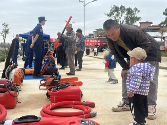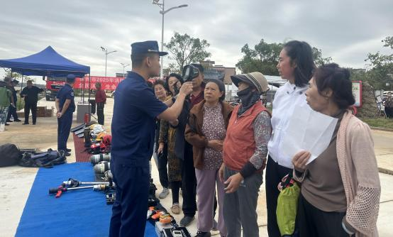 (三)器材展示与技能传授。在消防器材展示区,各类灭火器、消防水带、应急照明灯等常见消防装备一字排开。消防员用通俗易懂的语言,详细讲解了这些“安全卫士”的使用原理、操作技巧及维护要点,并邀请群众进行零距离接触和体验,增强了群众对消防装备的熟悉度和操作信心。