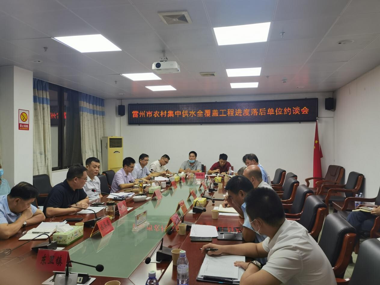 2021年8月11日下午3:30,雷州市委书记张仁建召开全市农村集中供水全覆盖工作会议,市委市政府部分领导、各镇党委书记、镇长及市直各相关部门主要负责人参加了本次会议。本次会议分为三个部分,张仁建书记首先传达了8月11日上午在湛江参加的农村集中供水书记专题会议精神和要求,市水务局局长符宗安两次汇报全市各镇农村集中供水全覆盖工作进度,最后由市委组织部和市纪委对工作进度严重滞后及工作态度不够端正的乡镇书记进行约谈。