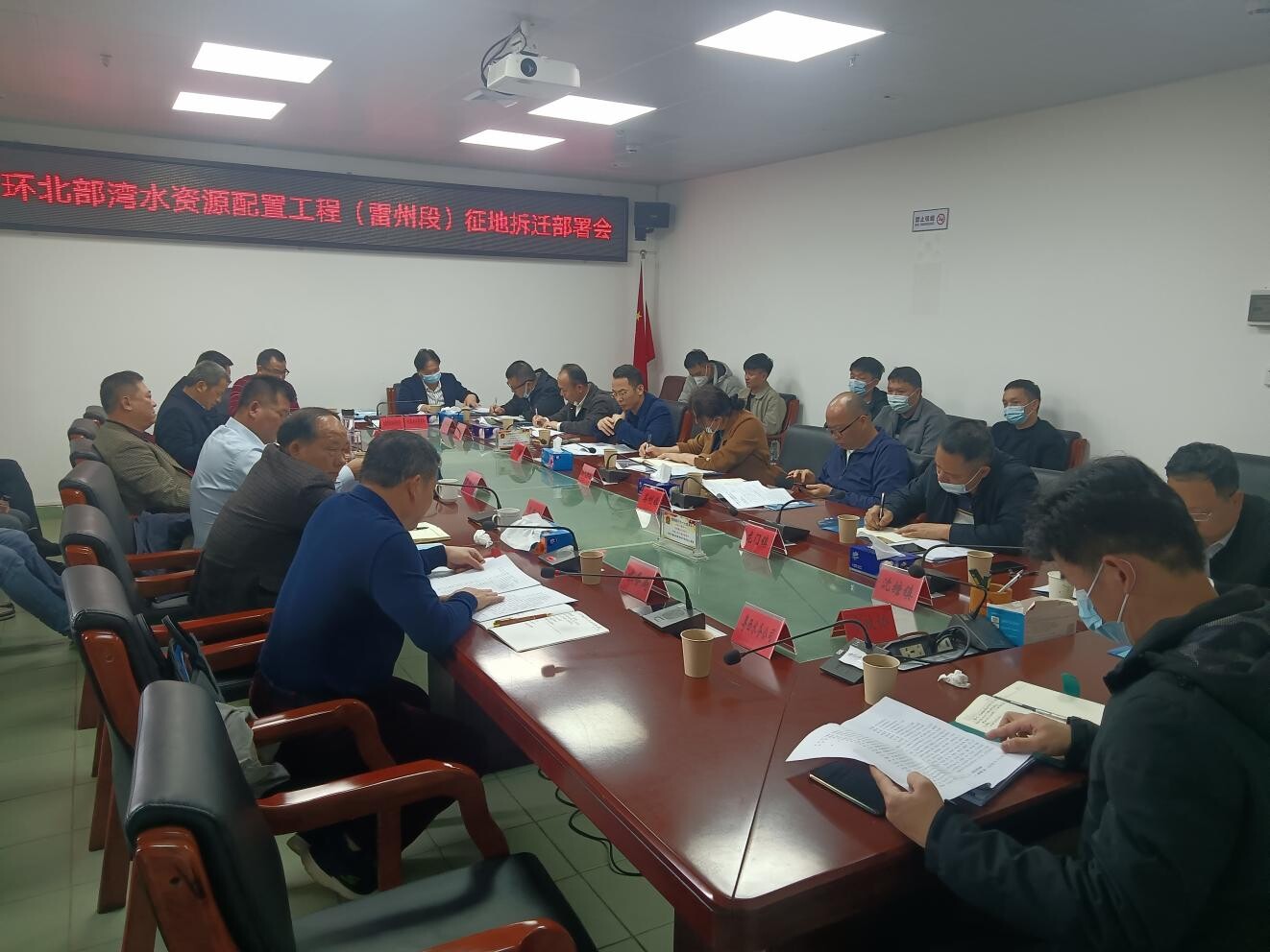2023年2月2日下午,雷州市委常委、统战部部长曹康武在市政府主持召开环北部湾水资源配置工程(雷州段)征(租)地拆迁部署会。会议听取粤西粤海供水有限公司介绍环北部湾水资源配置工程(雷州段)基本情况,市水务局宋晓局长解读《环北部湾广东水资源配置工程(雷州段)征(租)地拆迁工作实施方案》,简要介绍了市指挥部组成人员、各相关单位职责、征(租)地任务、征(租)地包干总额及补偿标准、工作步骤及完成时间节点、工作措施等内容。市自然资源局周立强副局长通报了征(租)地任务,并专业解读《实施方案》中征(租)地包干总额及补偿标准等事项。各镇(街)和相关职能部门、农林场等国有单位根据实际情况在会上对《实施方案》发表了反馈意见。接着,市政府副市长黄文驹和市政协党组副书记李巧言对环北部湾水资源配置工程(雷州段)征(租)地拆迁工作提出工作要求。