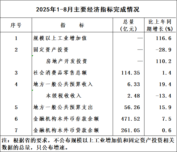 2025年1-8月主要经济指标完成情况