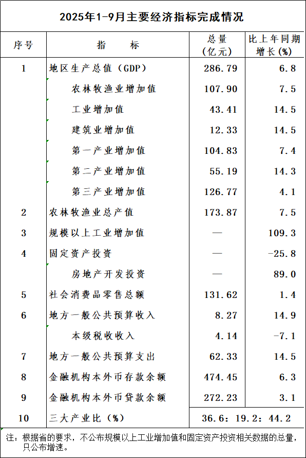 2025年1-9月主要经济指标完成情况