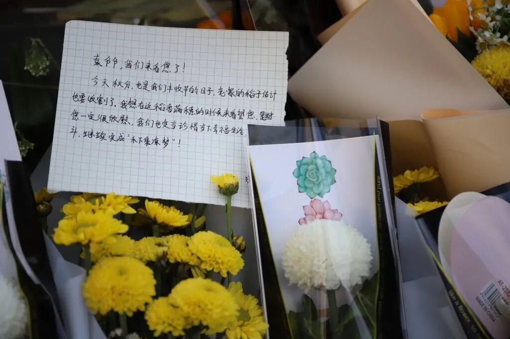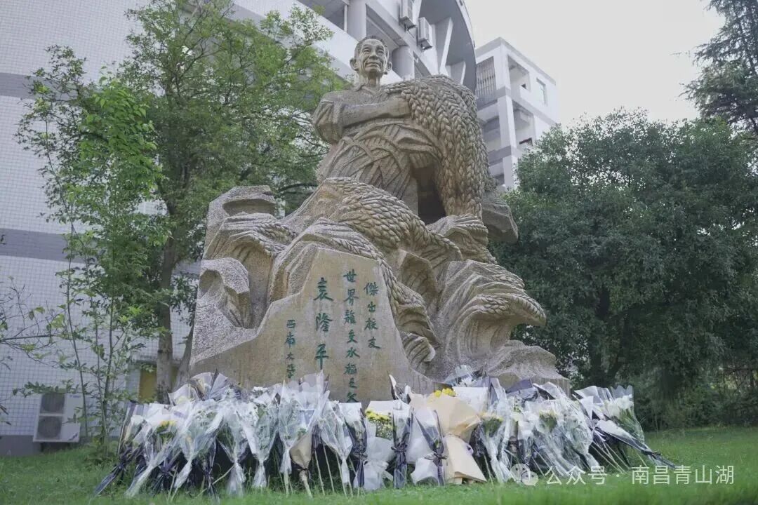 每年这个时候袁老手捧稻穗的雕像前总是会放满了鲜花写满了思念