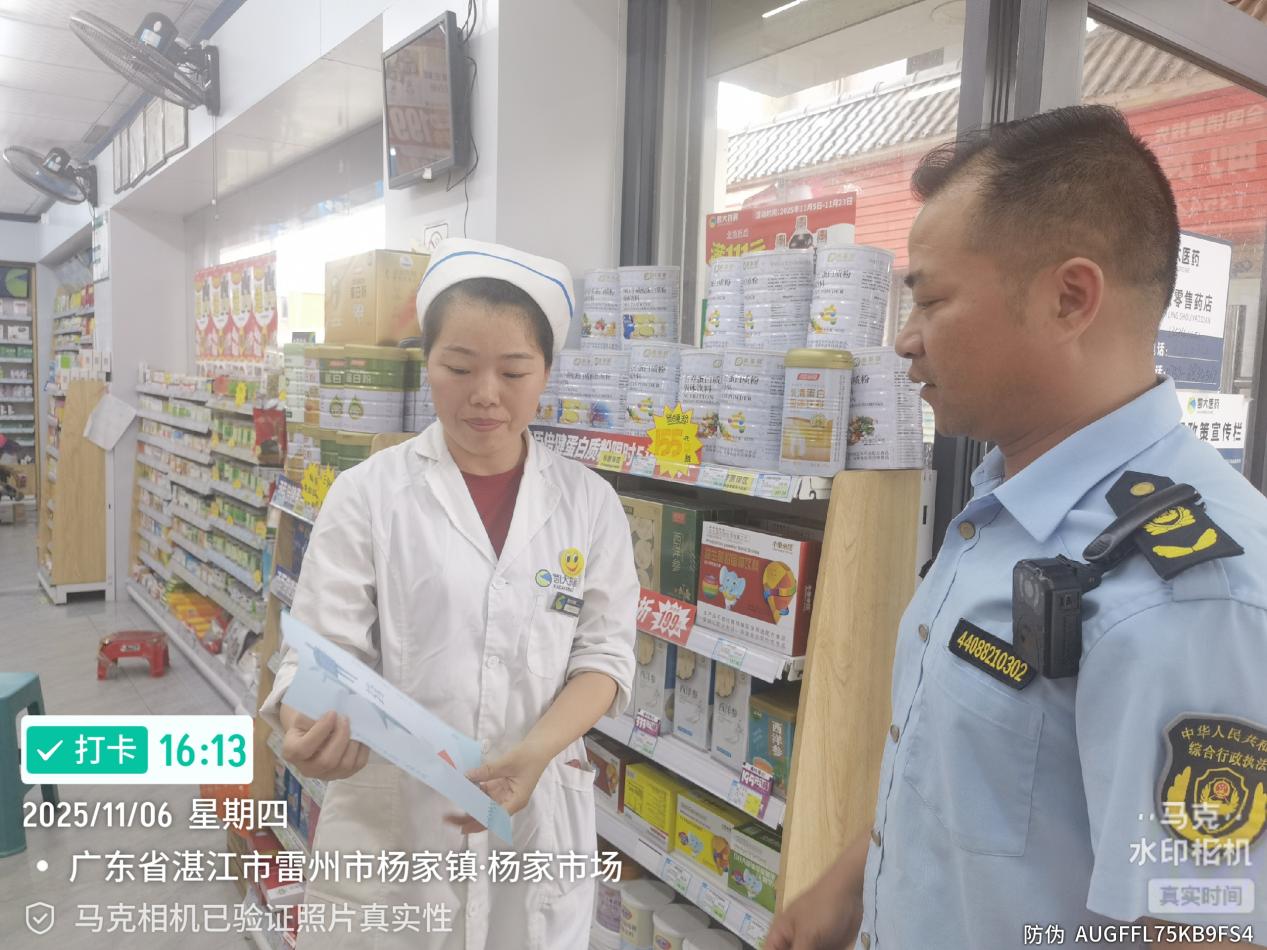 杨家镇综合行政执法队向辖区内各药店经营者宣传讲解诚信文化,引导药店遵守诚实守信、守法经营、合理定价、明码实价、保证质量、公平交易的诚信经营规则。严格遵循自愿、平等、公平、诚信的交易原则,不弄虚作假,不搞虚假宣传,不搞价格欺诈,不销售有毒有害和国家禁止销售的药品,切实维护消费者合法权益,营造良好的营商环境。