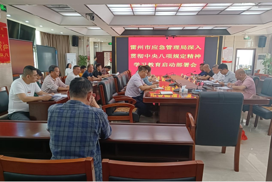 3月27日,雷州市应急管理局召开深入贯彻中央八项规定精神学习教育启动部署会,传达学习习近平总书记关于深入贯彻中央八项规定精神重要论述,深入贯彻中央、省委、湛江市委和雷州市委会议精神,研究部署全局学习教育工作。局党委书记、局长杜臣飞主持并讲话,全体党员干部参加会议。