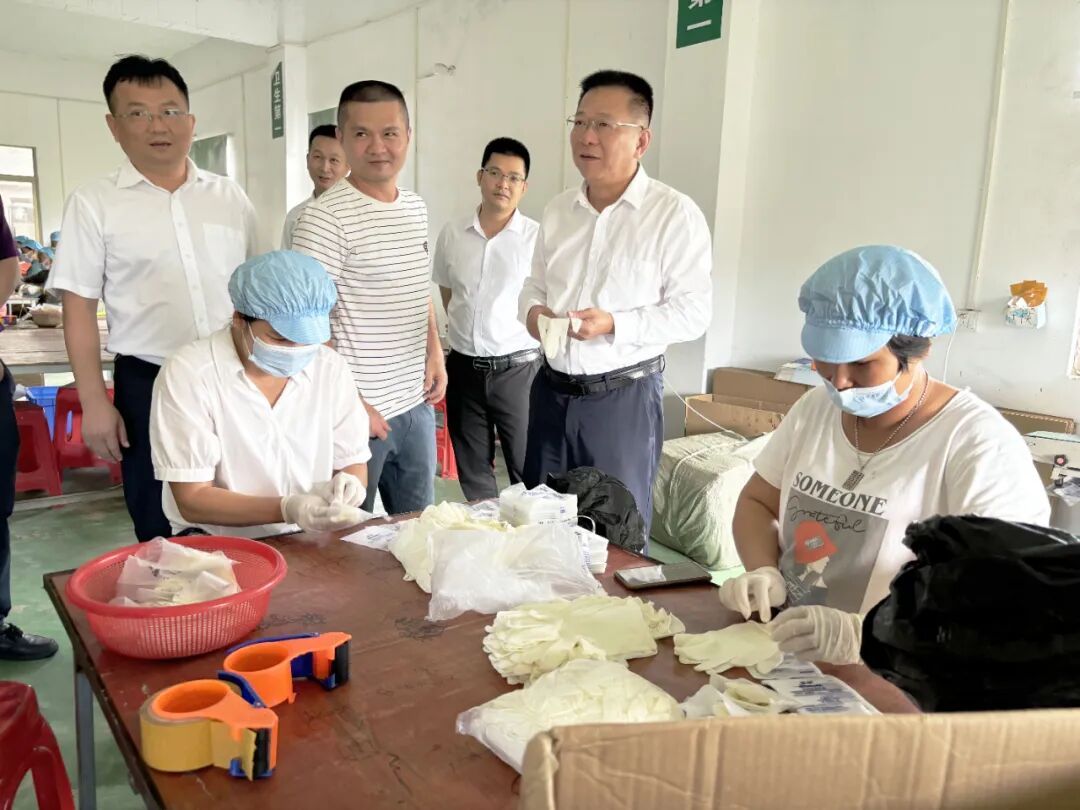 当天上午,吴松江一行首先来到雷高镇大群村,实地参观了该村菠萝园及手套加工厂。该村在党支部书记朱晋勃带领下,对坡地进行整合和规划管理,统一承包种植高效经济作物,现坡地连片种植菠萝约1300亩、香蕉300亩、木瓜300亩,大大提升了坡地利用价值和群众集体经济收入。手套加工厂由本村乡贤创办,为村里妇女提供大量就业岗位,大大增加了该村人均收入,缓解了村里百分之八十留守家庭的经济压力。吴松江对此给予充分肯定。